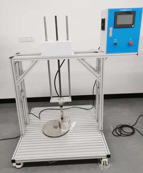 本設(shè)備符合GB9706.1-2020(IEC60601-1-2012)中15.4.7.1條及YY1057-2016醫(yī)用腳踏開關(guān)通用技術(shù)條件第5.1.3.1項(xiàng)標(biāo)準(zhǔn)要求中對腳踏控制裝置施加1350N的作用力達(dá)1min,來檢驗(yàn)是否符合來自人體重量的靜載荷條款要求;用于腳踏開關(guān)加載力試驗(yàn);需采用電機(jī)++絲桿+力傳感器加載方式,力值數(shù)顯。力傳感器與壓板之間加一個萬向關(guān)節(jié)連接。